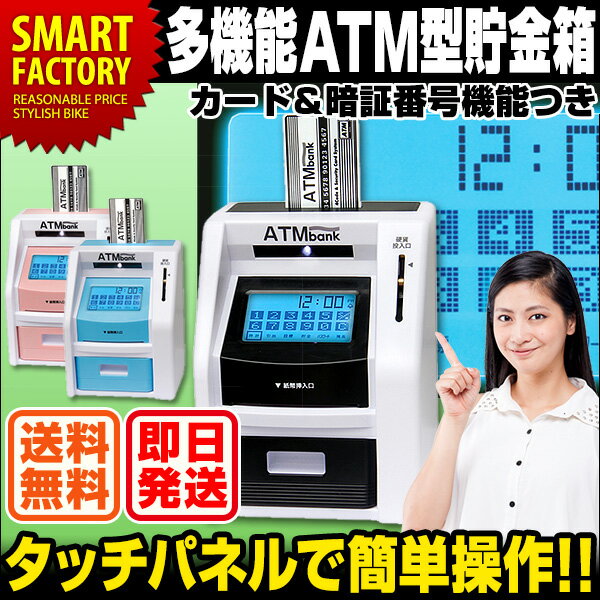 ATM 貯金箱 タッチパネル 送料無料 即日発送 ATMバンク タッチパネル式 残高自動計算 紙幣自動挿入 貯金 貯金箱 暗証番号 500円玉 お札 硬貨 お金 おこづかい イベント 景品 雑貨 おもしろ 玩具 おもちゃ クリスマス 誕生日 プレゼント ギフト ブラック ピンク ブルー ☆