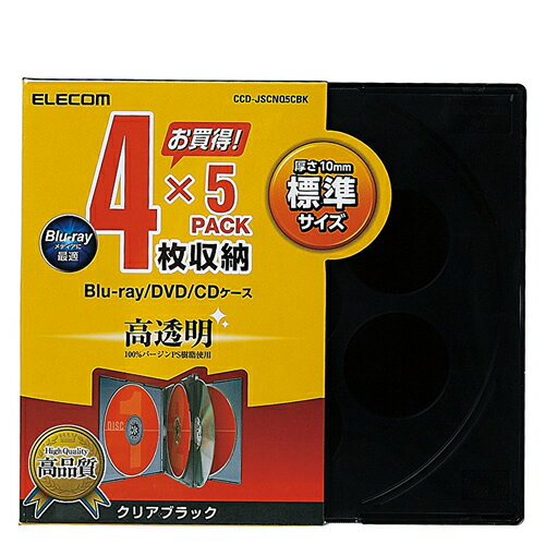 エレコム ディスクケース Blu-ray/DVD/CD対応 4枚収納 5枚セット クリアブラック CCD-JSCNQ5CBK