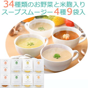 スープスムージー4種(エビとトマト、かぼちゃ、白ネギと生姜、カリーとパプリカ) 9個入りギフト【エムエム・スープ】【国産34種類の野菜と米麹入】Maazel Maazel(マーゼルマーゼル)【のし対応可】