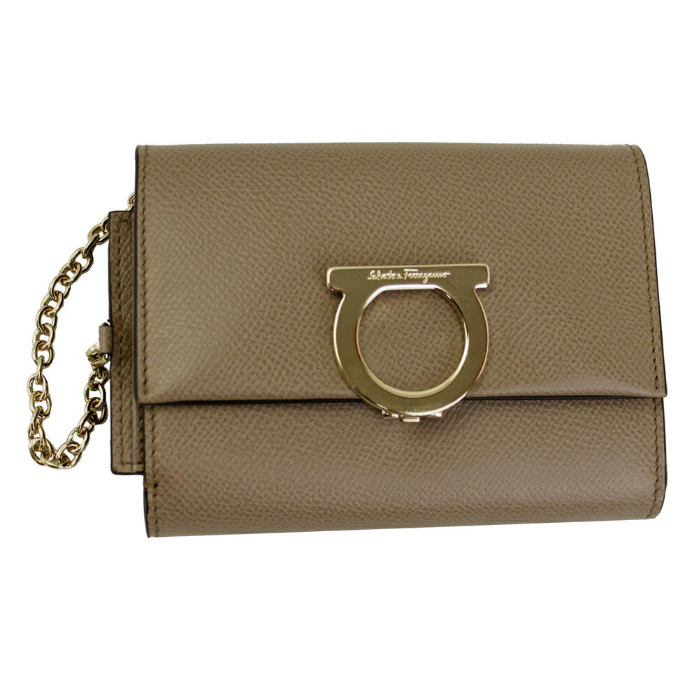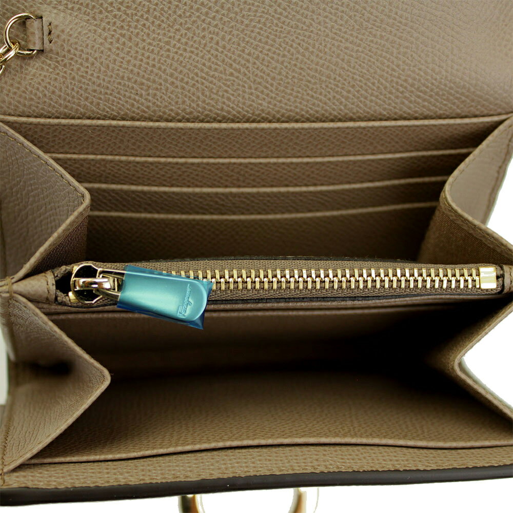 【新品】 【FERRAGAMO】 フェラガモ 二つ折り財布 ガンチーニ IDケース付き レザー FANGO グレーベージュ系 22D463 700209 2018-19秋冬新作