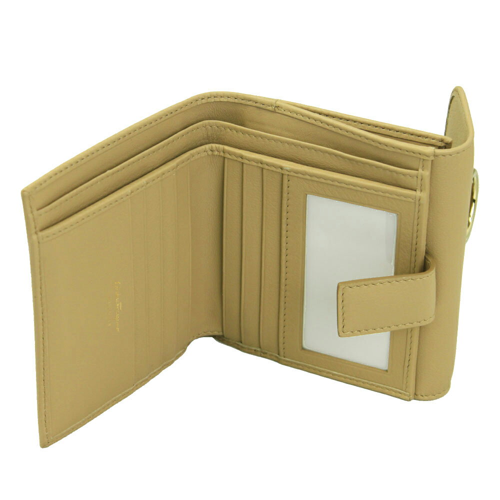 【新品】 【FERRAGAMO】 フェラガモ 二つ折り財布 ガンチーニ レザー ALMOND ベージュ系 22D183 684187