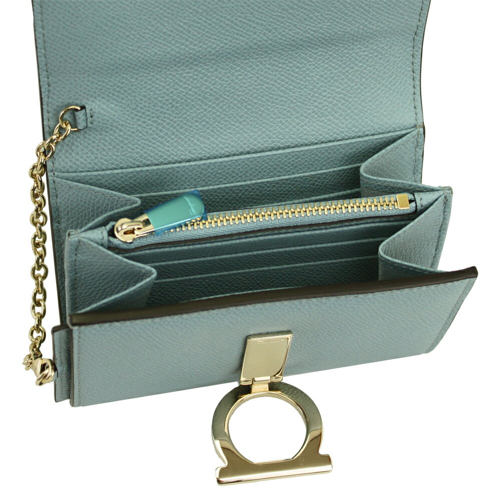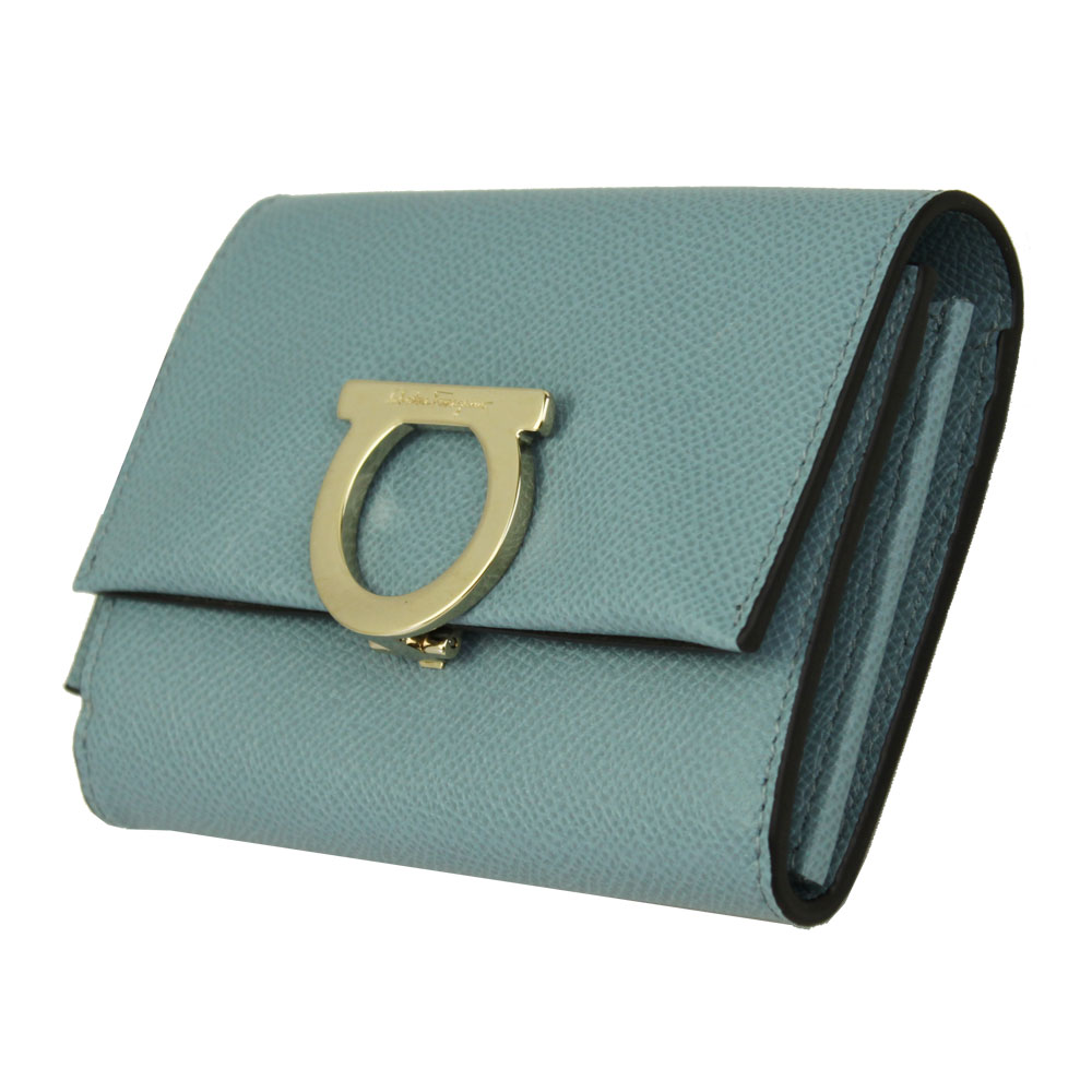 【新品】 【FERRAGAMO】 フェラガモ 二つ折り財布 ガンチーニ IDケース付き レザー BLUE HAZE ライトブルー系 22D463 700084 2018-19秋冬新作