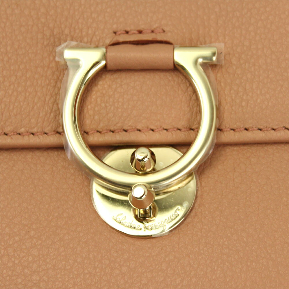 【新品】 【FERRAGAMO】 フェラガモ 二つ折り財布 ガンチーニ レザー NEW BLUSH ピンクベージュ系 内側ブラック 22D183 702384