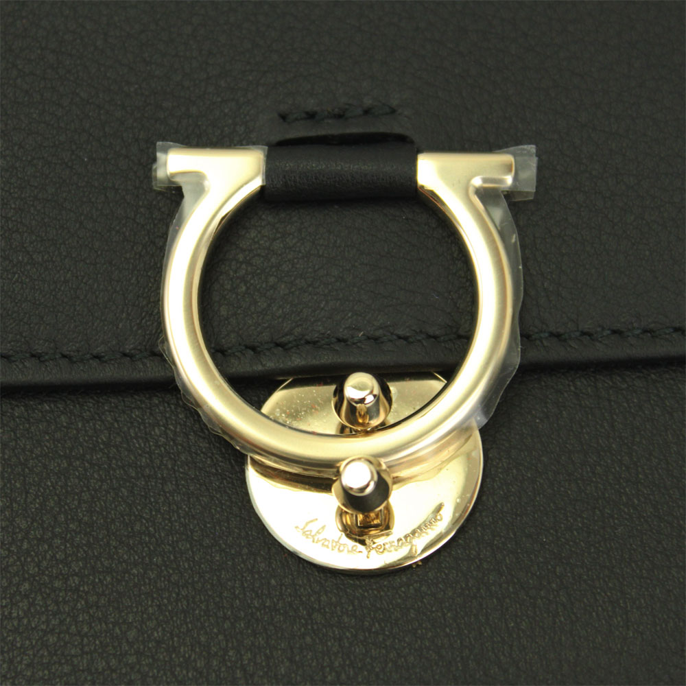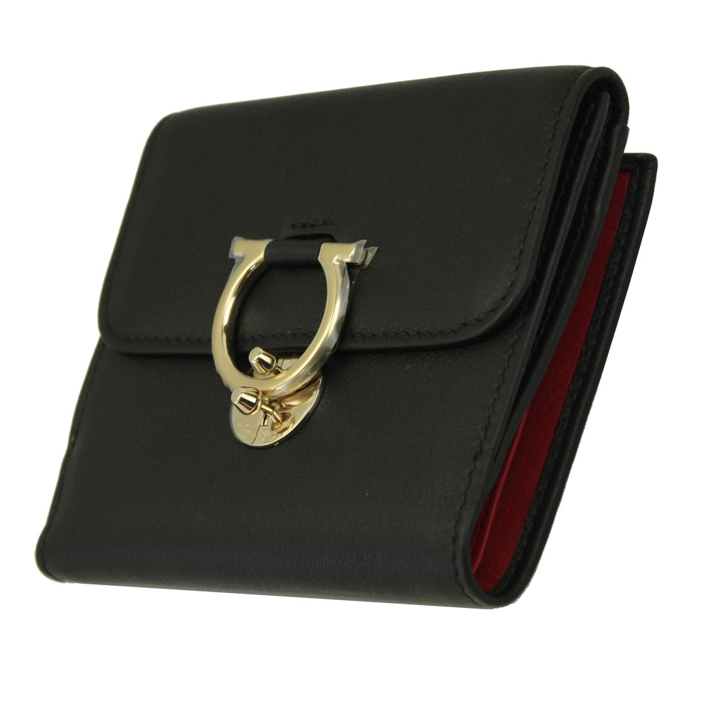 【新品】 【FERRAGAMO】 フェラガモ 二つ折り財布 ガンチーニ レザー ブラック 内側レッド 22D183 688807