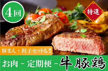 【ふるさと納税】しんとみお肉の定期便(牛・豚・鶏・中華セット) 全4回 約8.2kg 冷凍 こゆチキン こゆビーフ こゆポーク カルビ 赤身 ロース バラ ステーキ 小間切れ 若鳥 豚まん 餃子