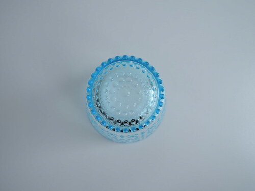 カラーはクリアライトブルーで、表面には凹凸のあるドット模様が施されたデザインです。