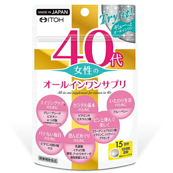 【送料無料】40代女性のオールインワンサプリ Try it! 15日分(120粒)【メール便】ITOHグレープシード ビオチン コラーゲン ヒアルロン酸 ビタミンA システイン プラセンタ マカ 乳酸菌 酵母 ナットウキナーゼ ブルーベリー エイジング 美 健康