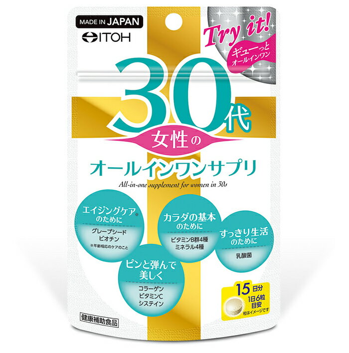 【送料無料】30代女性のオールインワンサプリ Try it! 15日分(90粒)【メール便でお届け】ITOHグレープシード ビオチン コラーゲン ビタミンC システイン ビタミンB群 ミネラル 乳酸菌 エイジングケア 美 健康