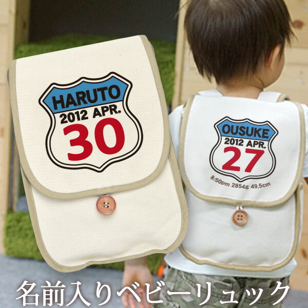 誕生日 1歳 出産祝い ベビー リュック 名入れ 名前入り プレゼント リュックサック Sサイズ ベビーリュック 赤ちゃん 5歳まで長く使えるランドセル型 ワッペン風デザイン ROUTE66(ルート66) 男の子 女の子 孫 初誕生日 誕生日プレゼント 百日祝い クリスマス 【ココロコ】