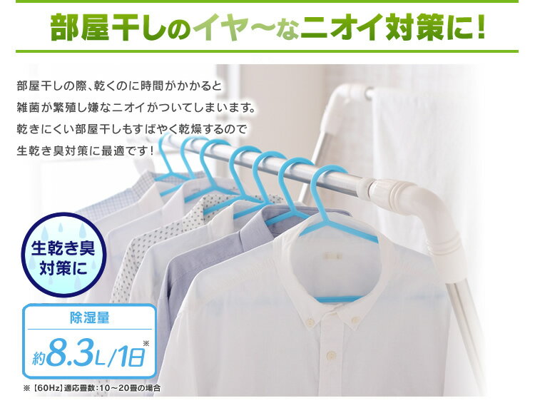1日最大8.3L除湿できる衣類乾燥除湿機です。