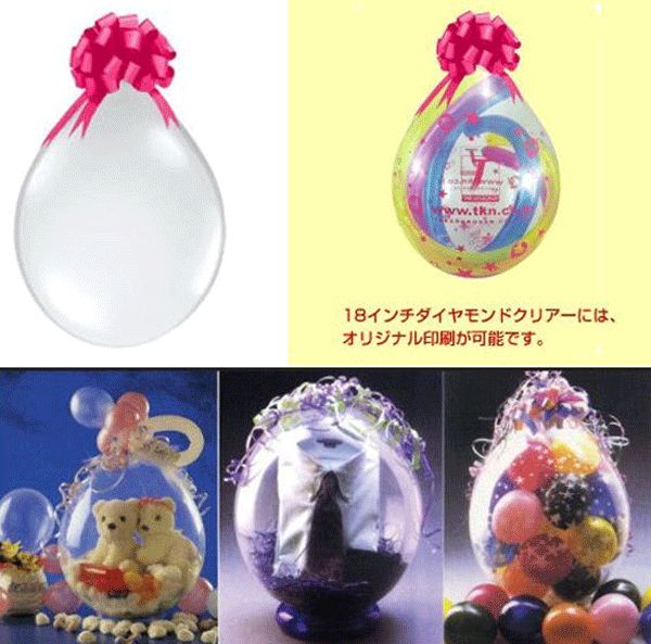 スタートキットとして18インチのクリア風船100個付きですがリボン、ペーパーパッキンは含まれておりません。
