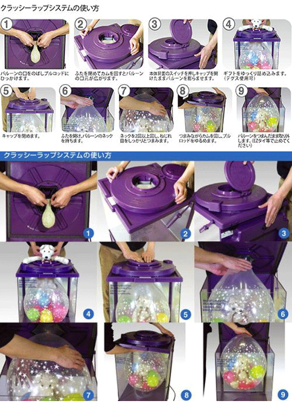 クラッシーラップバルーンシステム スターターキット 【セット内容】 本体 ラッピング用バルーンダイヤモンドクリアー18インチ100個 EZタイ100個付 クラッシーラップ. バルーンをラッピングする専用機材です。