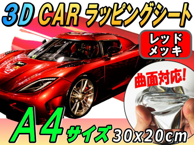 メッキ ラッピングシート (A4) 赤 幅30cm×20cm カーボディ レッド クローム 鏡面 ミラー調 フル ラップ 伸縮ビニール メタル調 3D曲面対応カスタム ボンネット屋外 クロム 加工 カッティング 内装 外装 ドアピラー 車バイク光沢 取り付け施工 フィルム