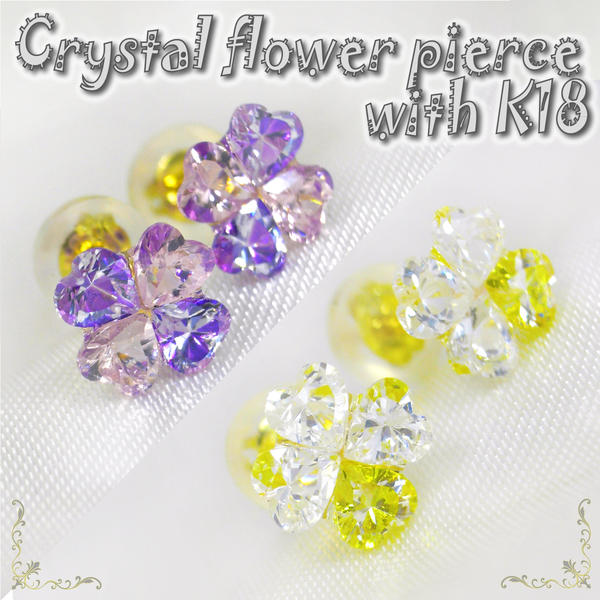 キュービックジルコニア ピアス K18 YG 両耳用 クローバー イエローゴールド フラワー クリスタル カラー シャムロック コンビ 四つ葉 送料無料 fourm クリスマス 母の日 レディース メンズ 男性 女性 ラッピング 包装 袋 誕生日 プレゼント ケース 箱 華奢 大きいサ