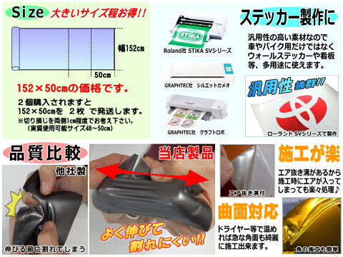 ※セダンのフルラッピングで約15m程度必要(あくまで参考です)ドアピラーやフロント/リアバンパーなど部分ラッピング、スペシャルなドレスアップ、フルラッピング是非チャレンジ!!【必読】※色/伸び/質感に関する質問が多々御座いますがモニター環境によって色味が異なって見えたり、思っていた色味と違う等の事態が無いよう、不安な方は購入前にサンプルセットをご購入下さい。