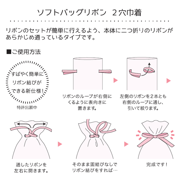 ソフトバッグベーシック 2穴リボン巾着袋 50枚【W120×H140/200 ラッピング用品 おしゃれ 小袋 不織布 無地 プレゼント包装 ギフト クリスマス S2】