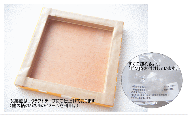 ■商品説明:付属のピンを壁に押し、裏側の木枠を掛けるだけで、簡単に掛ける事ができます。