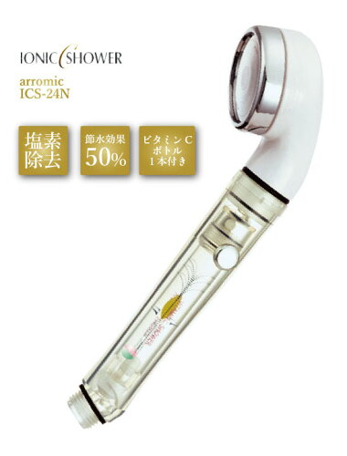 【送料無料!!】アラミック イオニックCシャワー 塩素除去 ICS-24N シャワーヘッド 節水 お肌にやさしい 敏感肌 アトピー ビタミンC シャワー 節水50% 塩素低減 ビタミンC1本付 増圧 水圧アップ 節水シャワーヘッド 脱塩素 取替簡単 軟水効果