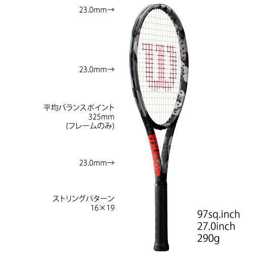 メーカーウイルソン 品名PRO STAFF 97L CV CAMOUFLAGE フェイス面積97平方インチ フレーム平均重量平均290g バランス平均325mm 長さ27inch フレーム厚23.0mmフラット グリップサイズG2 ストリングパターン16×19 素材BLXBRADED GRAPHITEKEVLERCOUNTERVAIL 付属品ソフトケース 発売日2018年8月 サービスガット店舗とは内容が異なっております。